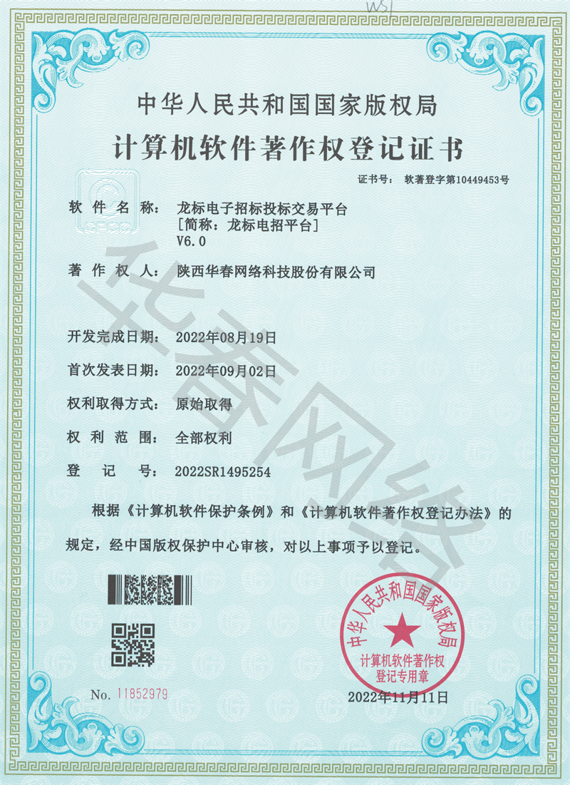 龍標(biāo)電子招標(biāo)投標(biāo)交易軟件著作權(quán)
